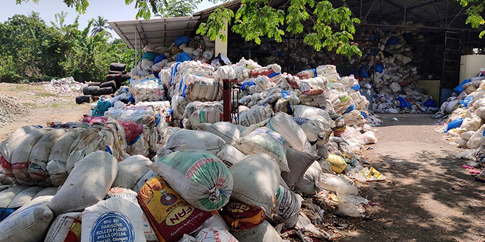 Collection segregation and bailing of pet bottle, pp bottle, used aluminium cans. Collection of materials are done by rag pickers by organising them with cycle rickshaws.